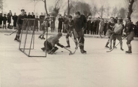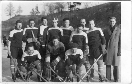 Dobové snímky ukazují momenty ze hry a také složení místního týmu přímo na domácím ledě. Můžete zde vidět sportovní „obojživelníky“ Ladislava Langsingera, Emanuela Kohouta, Zdeňka Josefuse, Jaroslava Pavlíka, Karla Pavlíka, Miloslava Hofmana, Josefa Malinu a Antonína Chmela.