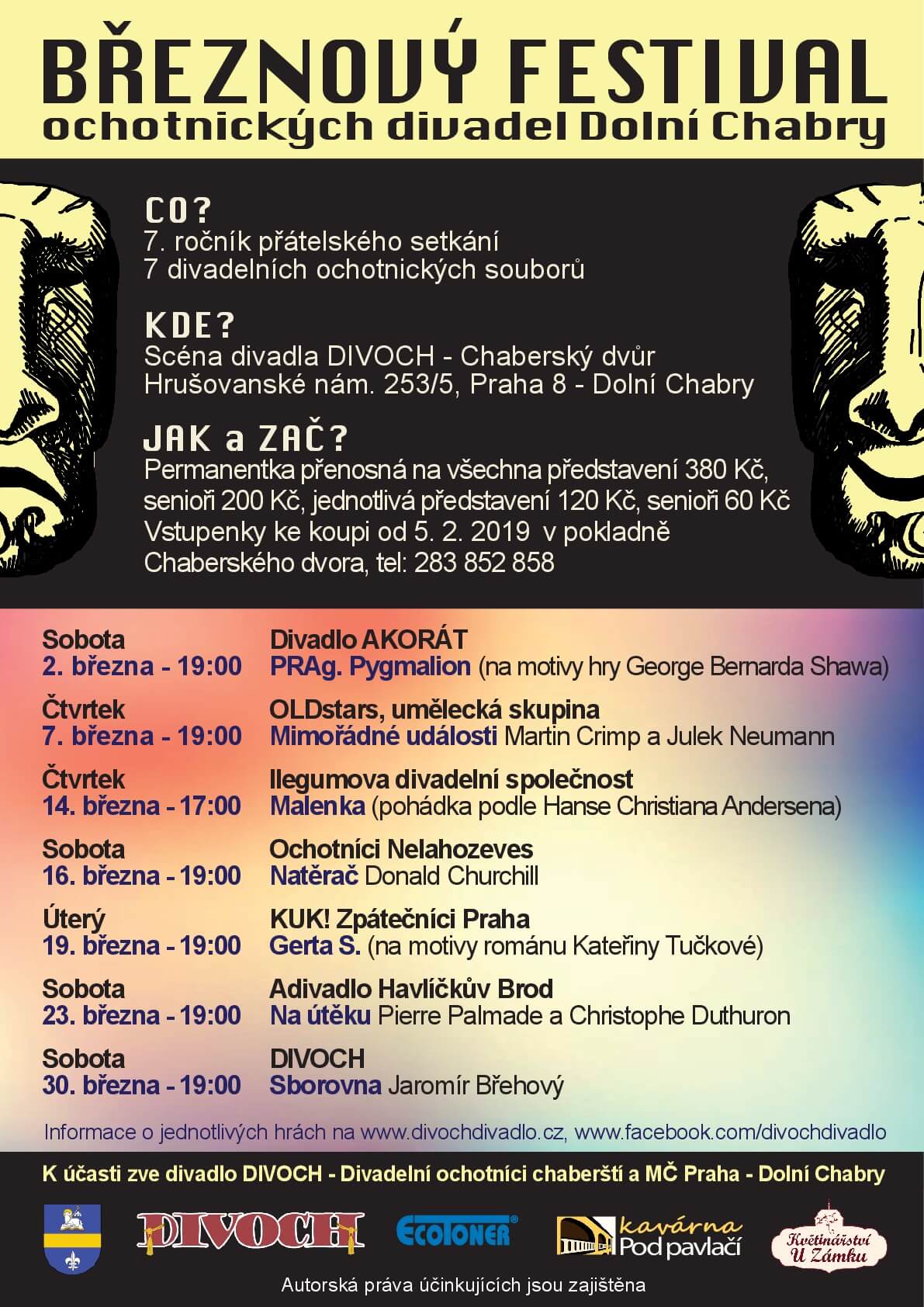 Prvního ze sedmi březnových vystoupení se chopili protagonisté Divadla AKORÁT, kteří se úspěšně zúčastnili také loňského ročníku a s představením Mrzák inishmaanský se stali vítězi divácké ankety. Letos vystoupili s moderní hrou s názvem PRAg. Pygmalion, která je inspirovaná komedií Bernarda Shawa. Příběh vypráví o znuděném majiteli PR agentury, jemuž se do cesty připlete naivní studentka, se kterou následně vytvoří dokonalý projekt. Představení se současnou tématikou sklidilo u diváků velký ohlas.